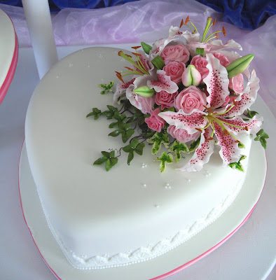 By the-icing-on-the-cakeAll of those flowers and foliage are handmade. Seriously! Click on the pic and look at it close-up: you'll be blown away. Plus, this is only one of three tiers; hit the link to see the others.